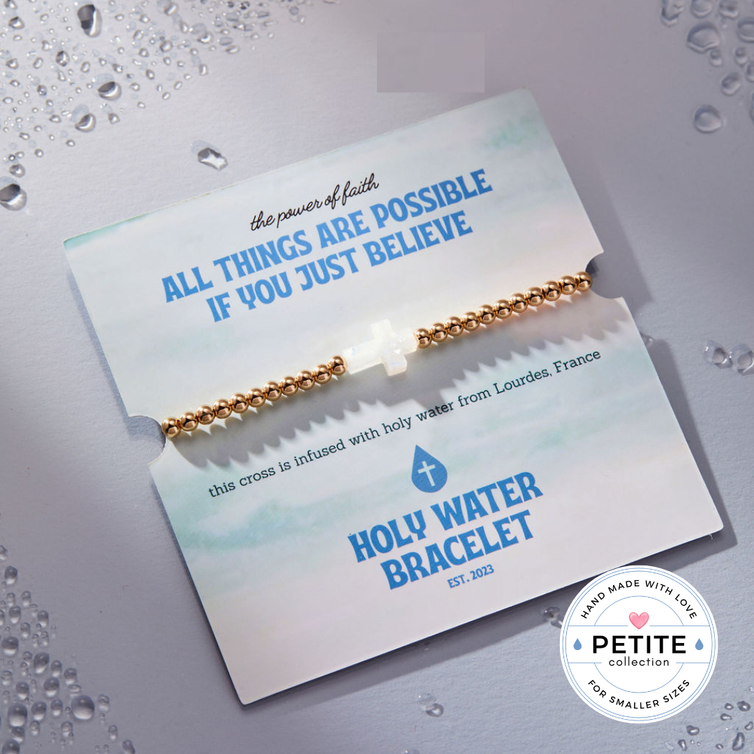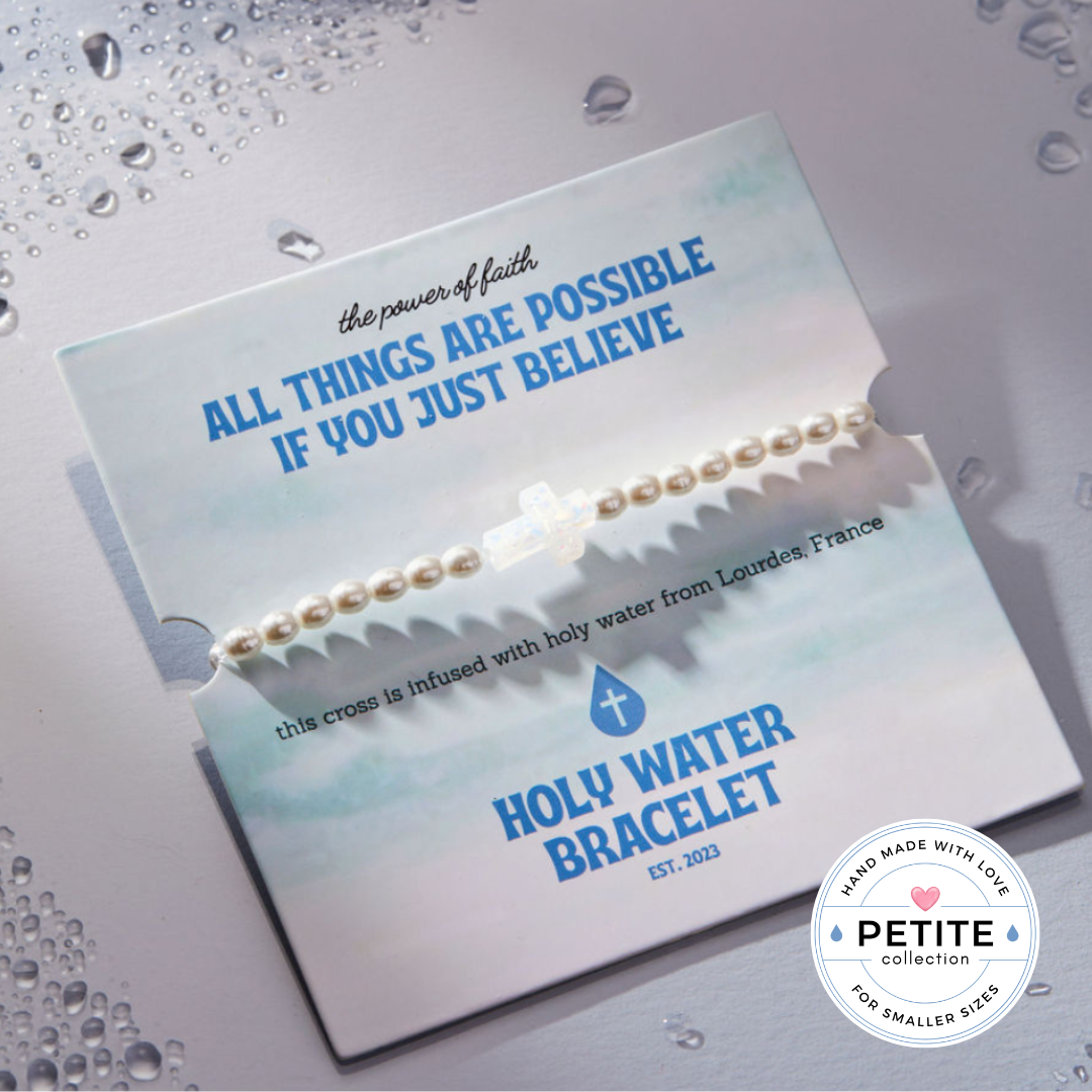 Our best-selling bracelet is now available in a smaller size for your little one! Each cross features our signature cross infused with authentic holy water sourced directly from Lourdes, France.