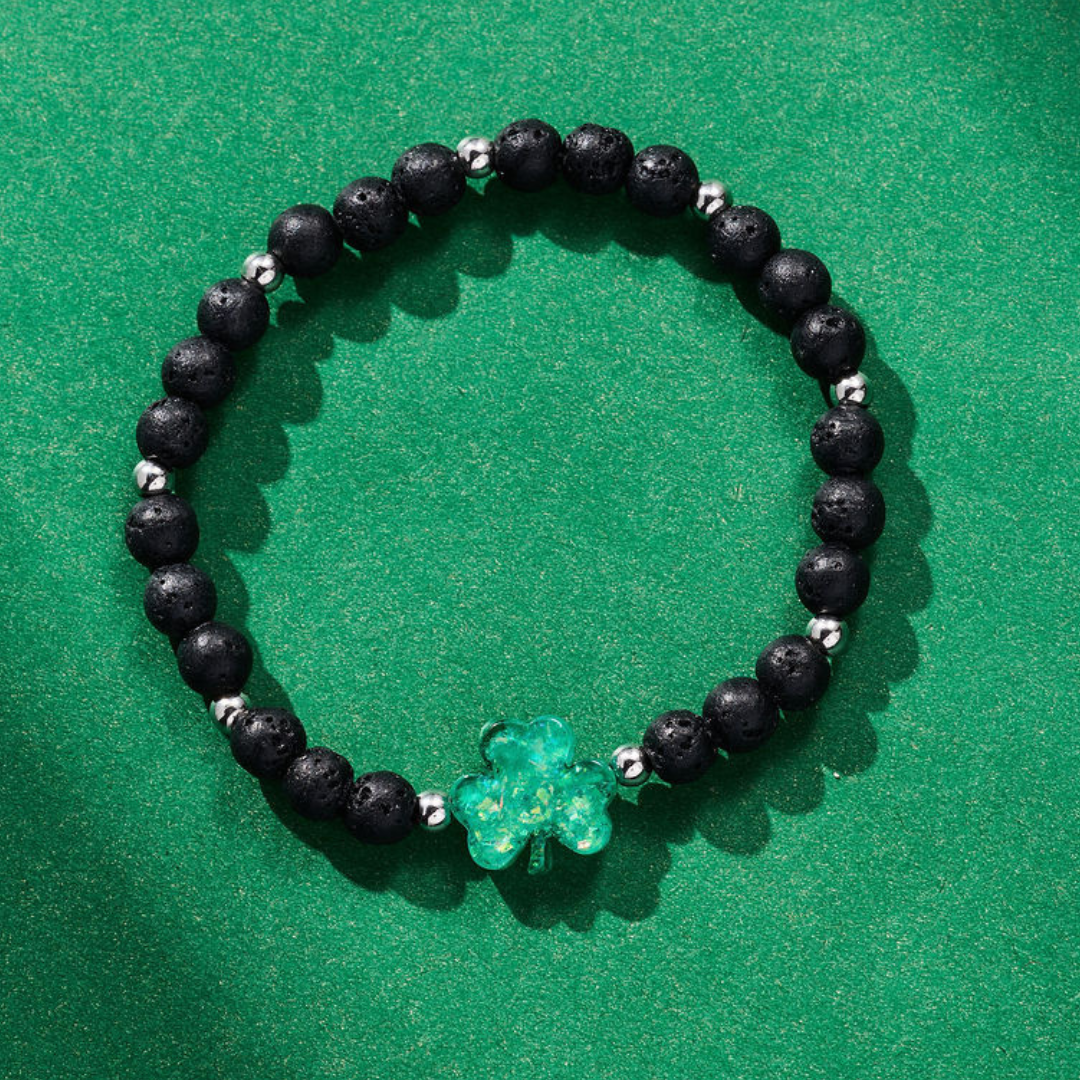 HOLY WATER MEN'S SHAMROCK BRACELET IN LAVA ROCK