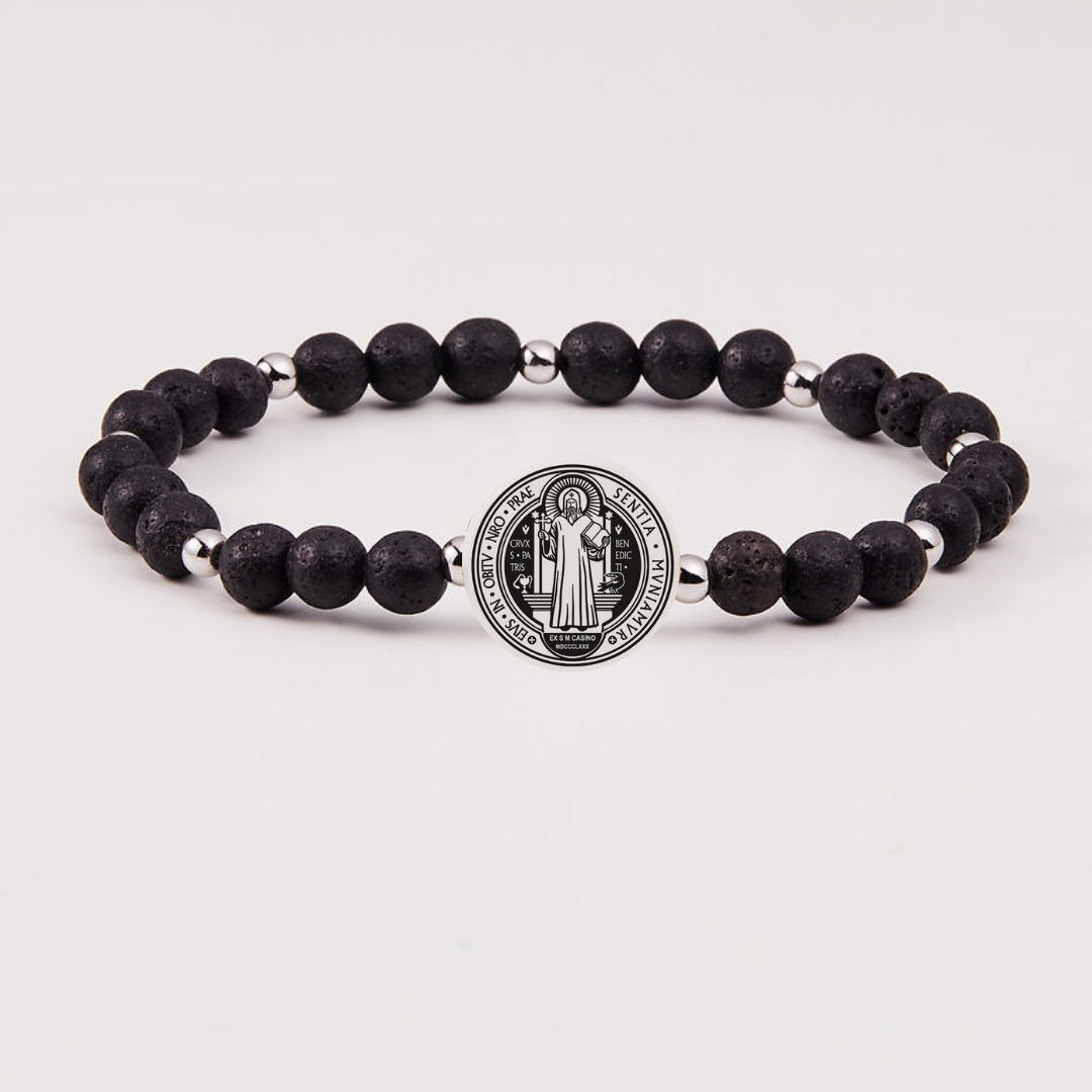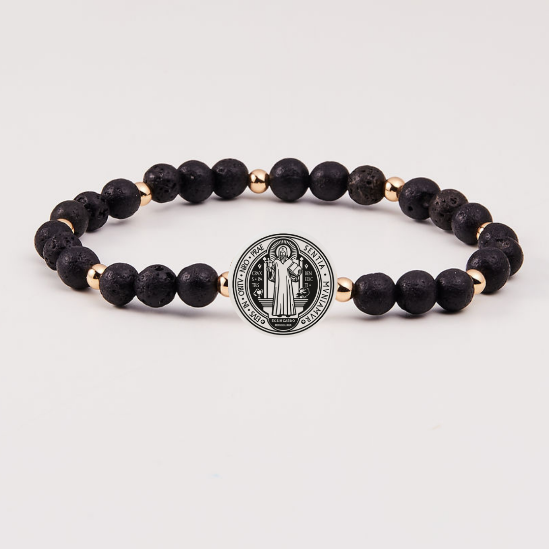 HOLY WATER MEN'S SAINT BENEDICT BRACELET IN LAVA ROCK