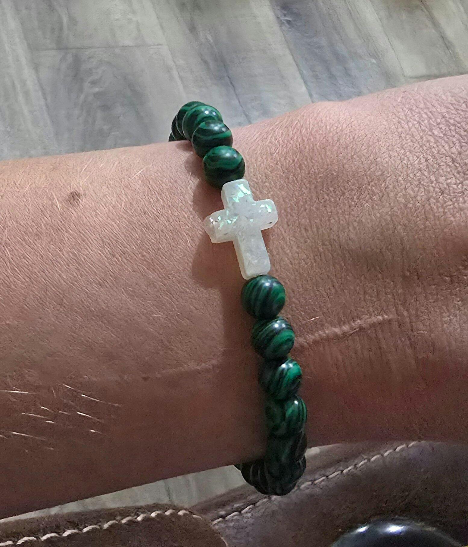 HOLY WATER CROSS BRACELET IN MALACHITE