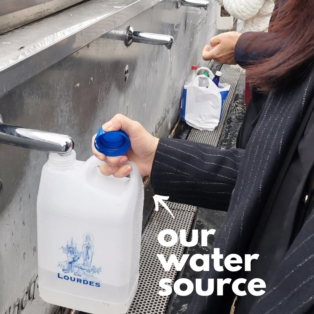 - Resin cross infused with authentic holy water from Lourdes, France
