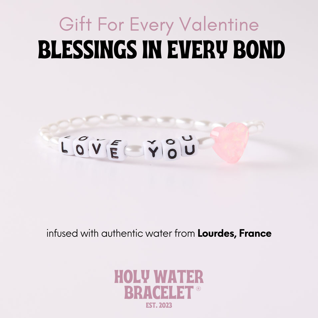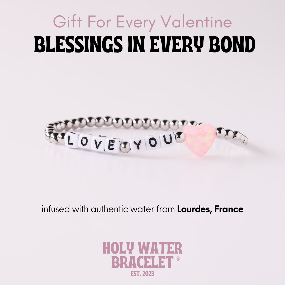 Your heart, wrapped around their wrist. Celebrate your forever connection with a daily reminder that some bonds are meant to last forever. Featuring our classic pink heart, infused with authentic holy water sourced directly from Lourdes, France.