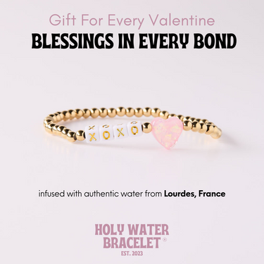 Hugs & kisses they can wear with the perfect little reminder of the love & affection you share. Featuring our classic pink heart, infused with authentic holy water sourced directly from Lourdes, France.