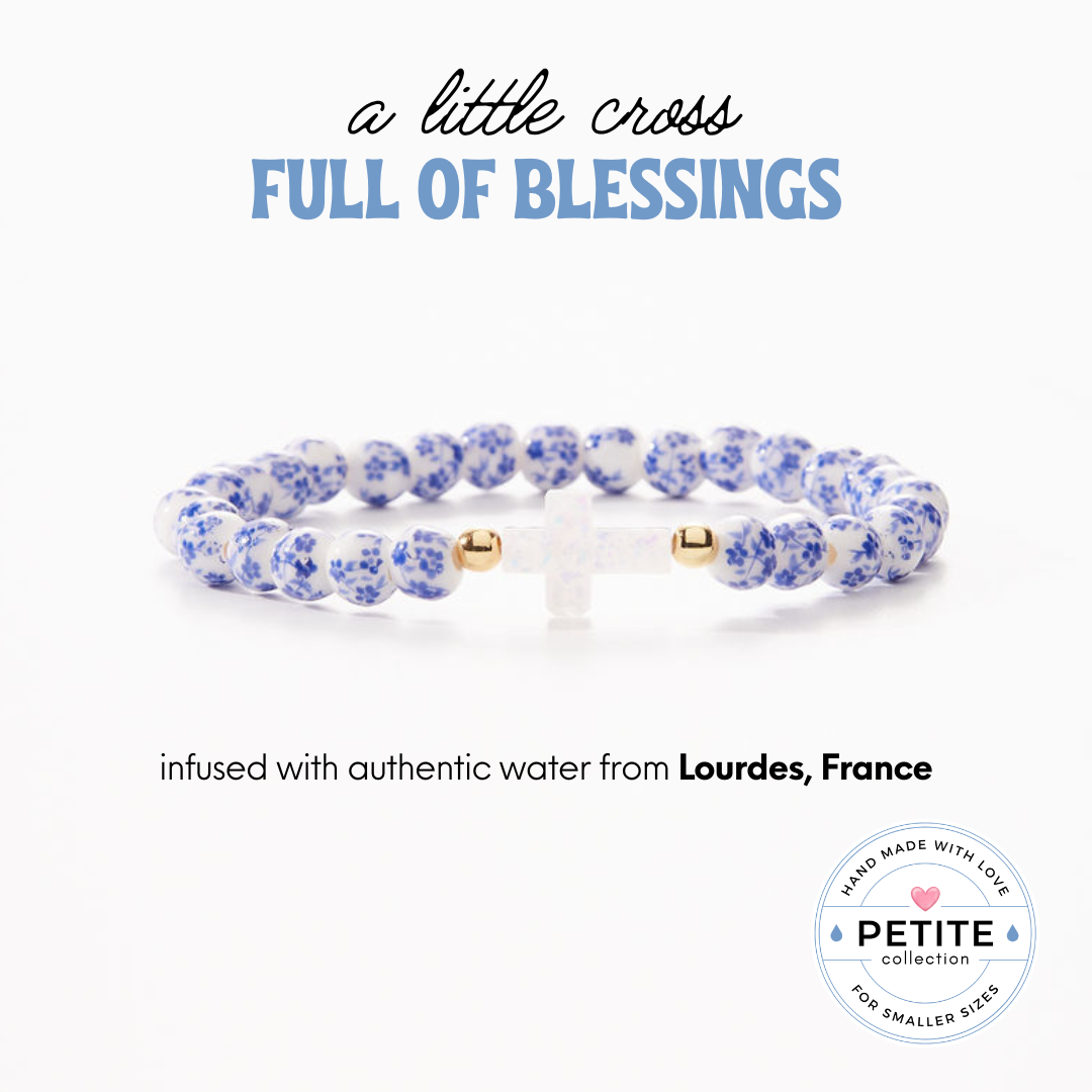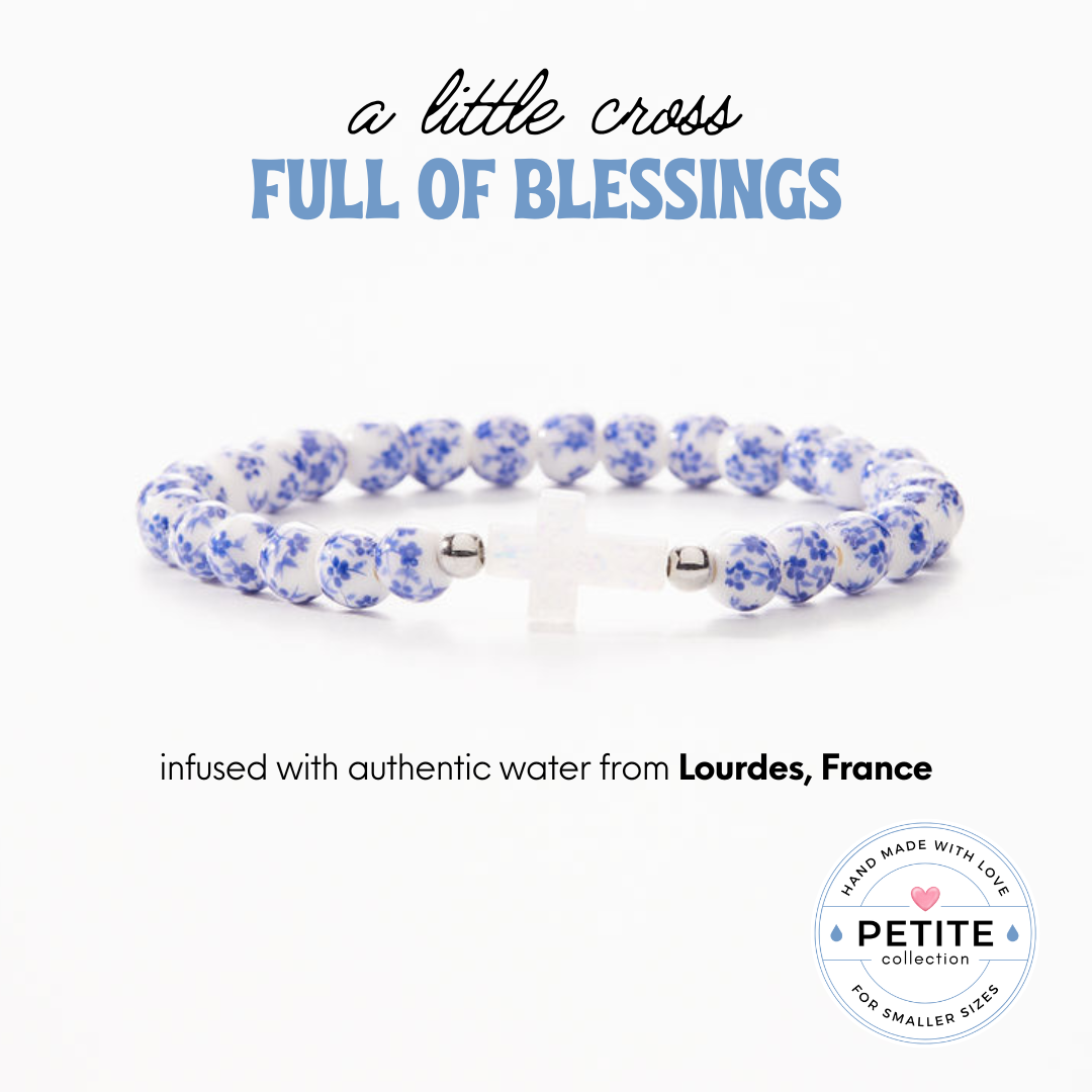 Our best-selling bracelet, now available in a petite size! The perfect gift for kids (or anyone with smaller wrists), this bracelet is designed to carry love and faith wherever they go. Featuring a resin Cross charm infused with authentic water from Lourdes, France.